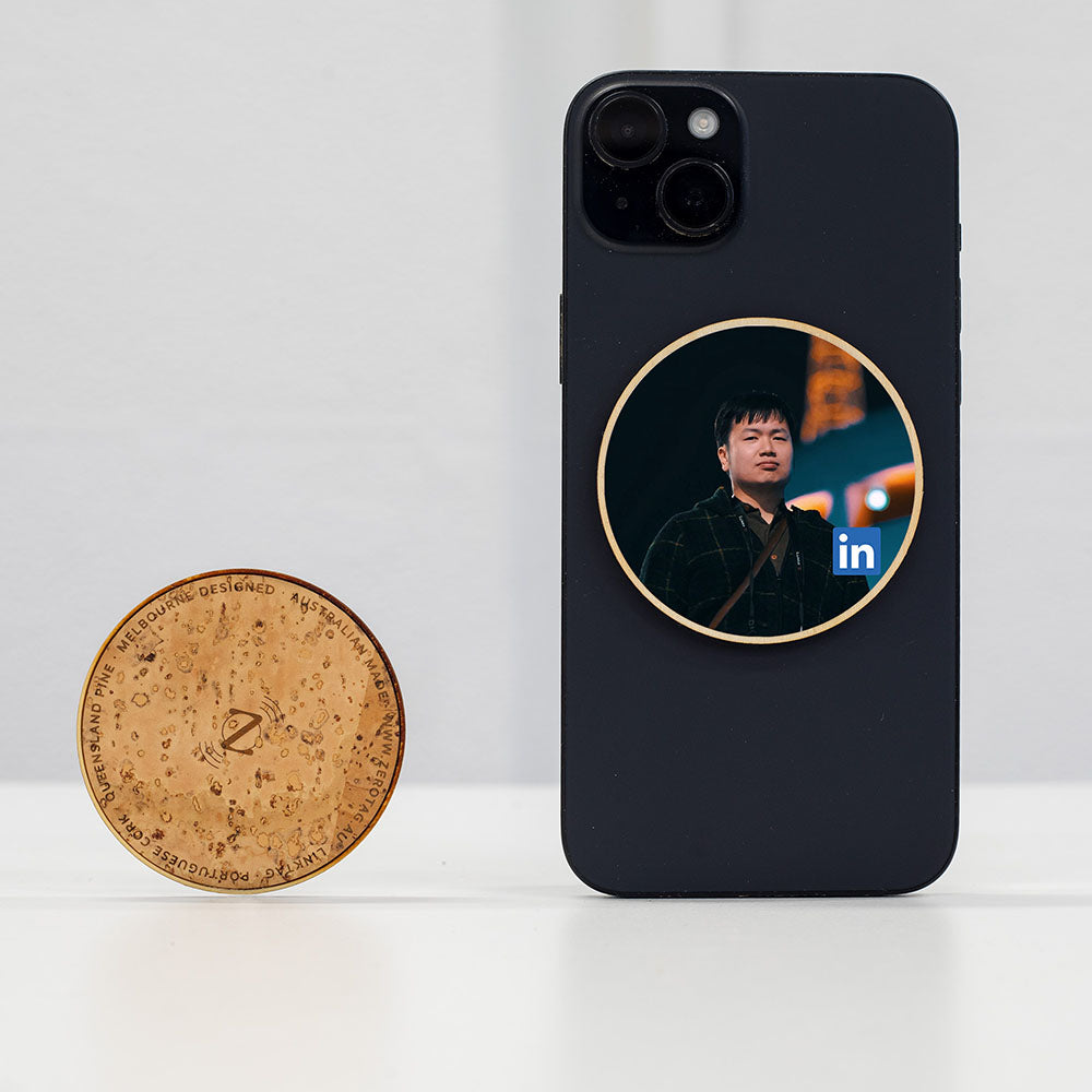 Sticks on the back of iPhones 12 and newer, or any phone with a MagSafe-compatible case.